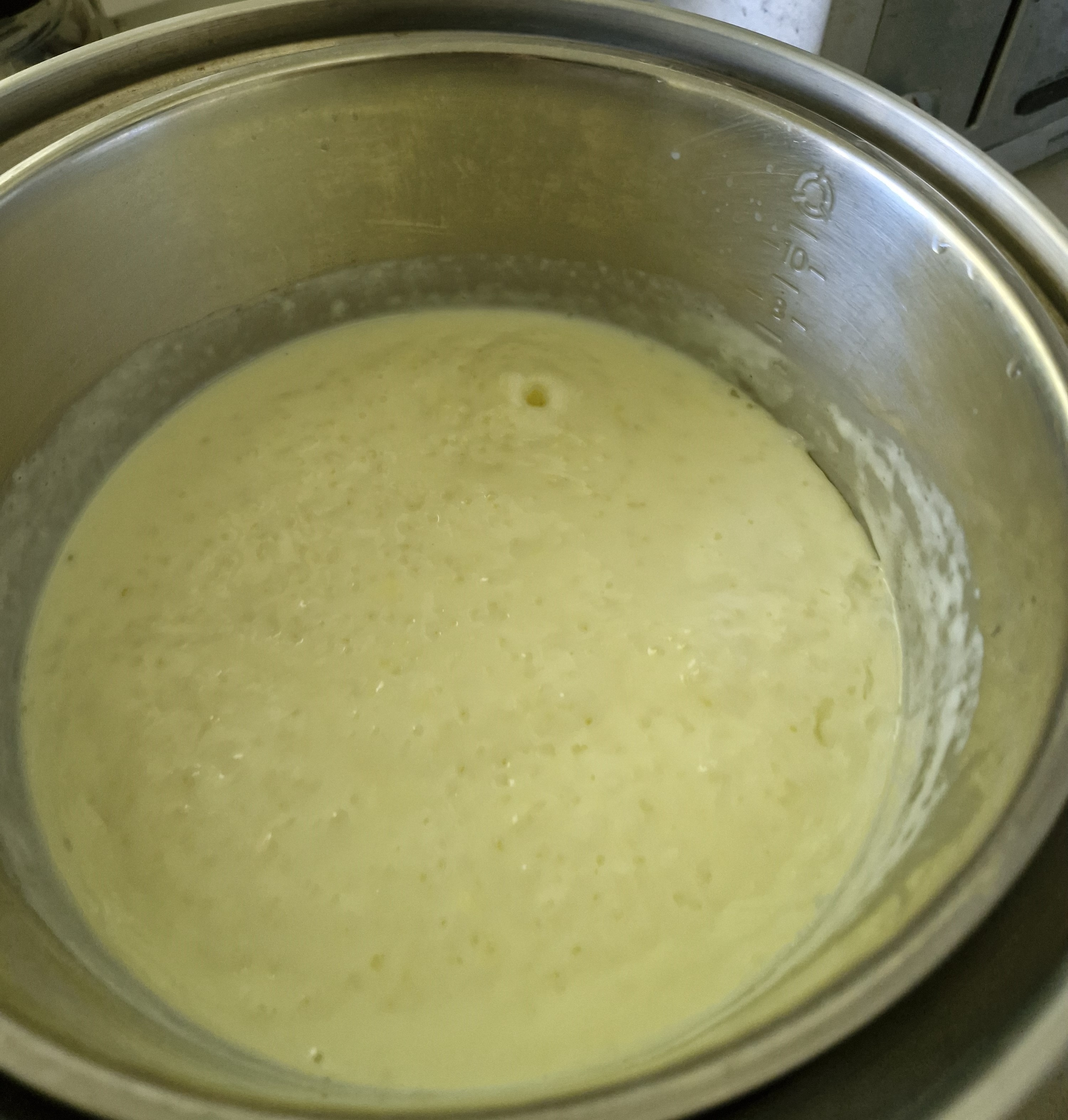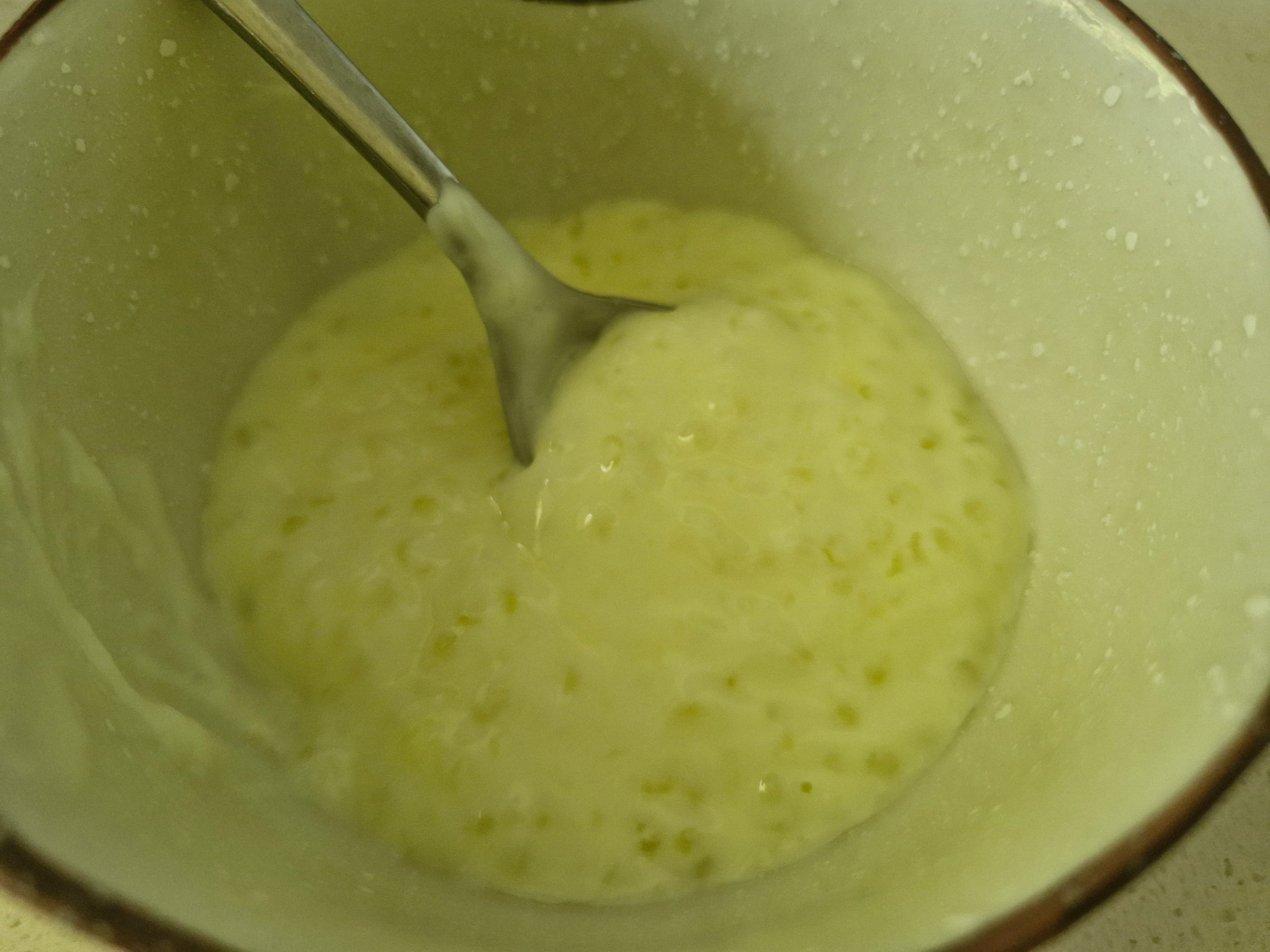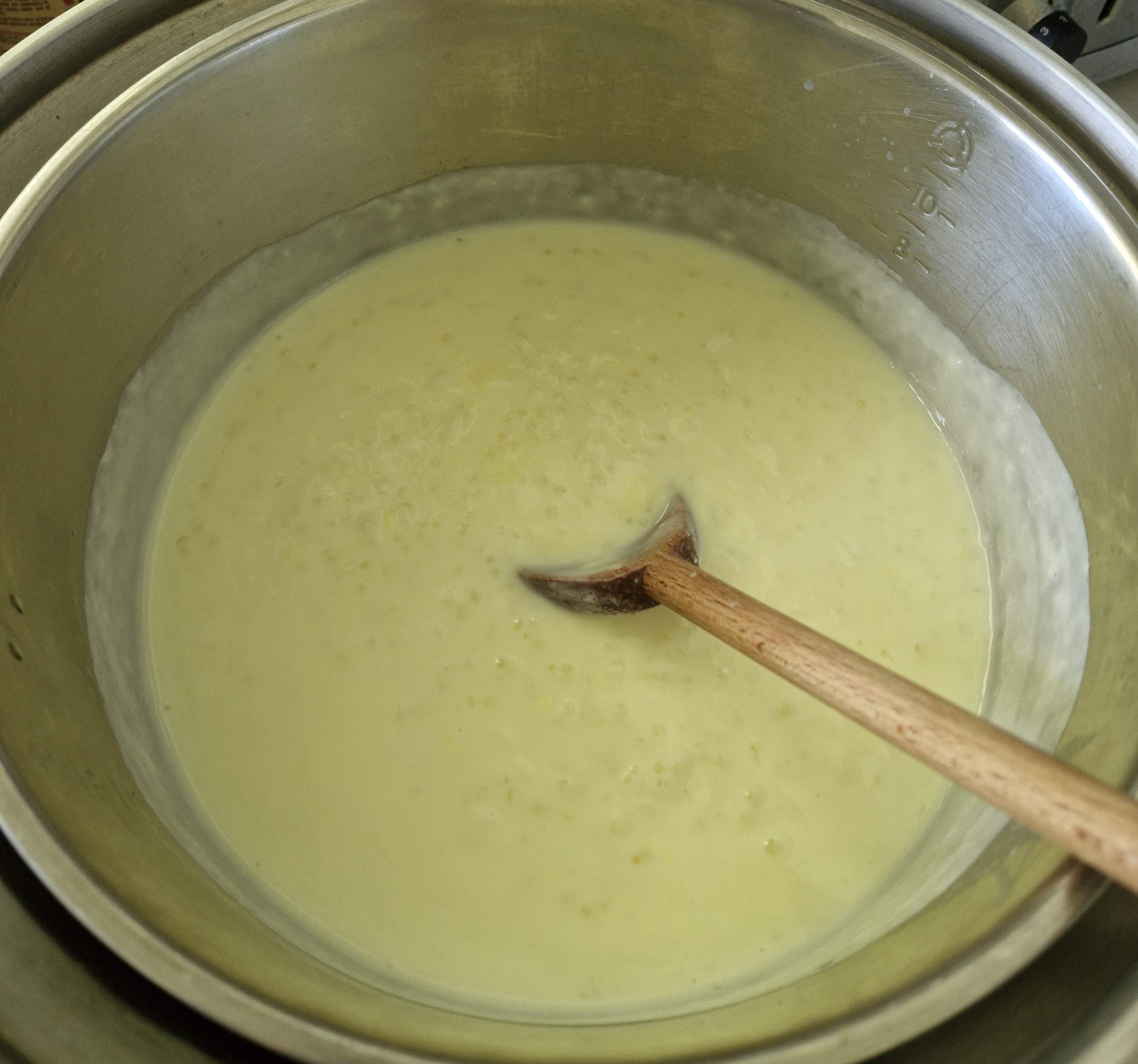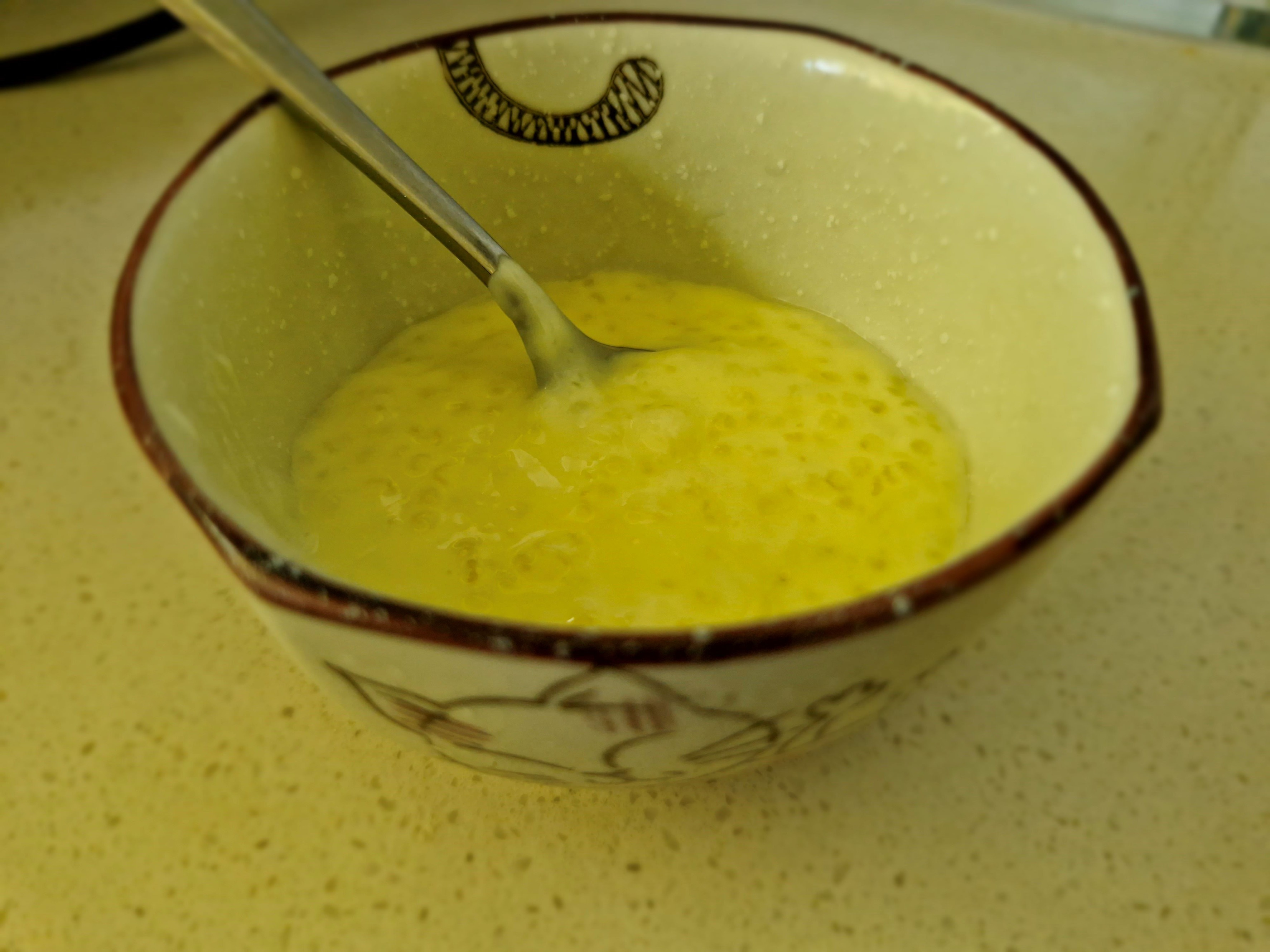 This is the first time I tried Sago in the Tatung Rice Cooker. It was so easy. I did start with 1 Cup of hot water and put 1/2 cup of sago in it and mixed. I added 4 cups of milk (room temperature) and mixed it. In the outer bowl I put 1/2 cup of water. At about 10 mins I mixed it thoroughly. At this point the Tatung was boiling away. If you have young children please do not let them sit next you during this next phase as you don't want the hot boiling water from the Tatung to jump out on them. This is where I stirred it really well and about 7 mins after that I put the custard mix (dissolved in cold milk earlier) and 4 teaspoons of sugar and stirred it again. I let it bubble away and served. It was a hit! Seconds were definitely asked for!