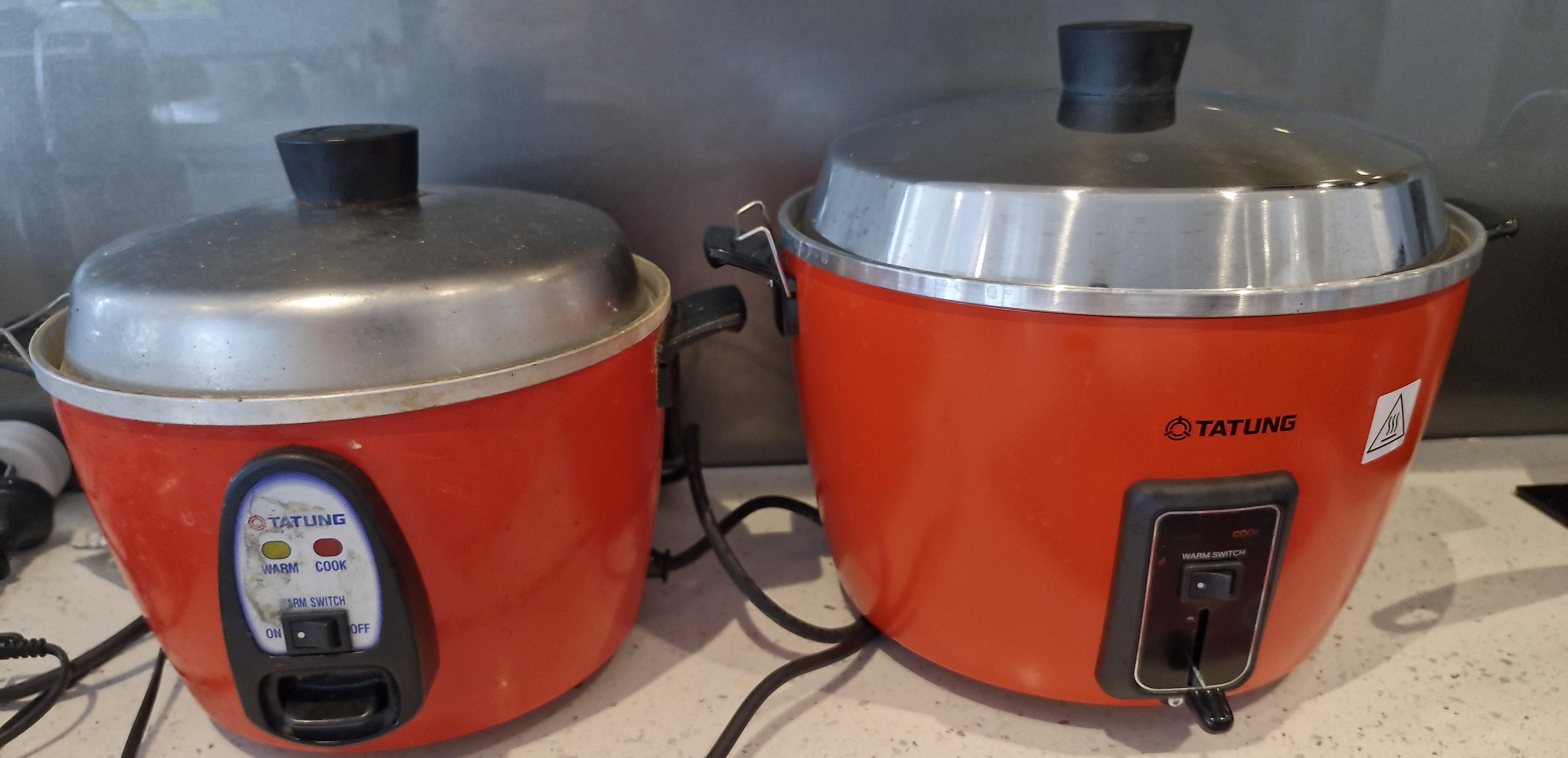 Photo at a relative's home who has 2 Tatungs going often, one for rice and one for other dishes.