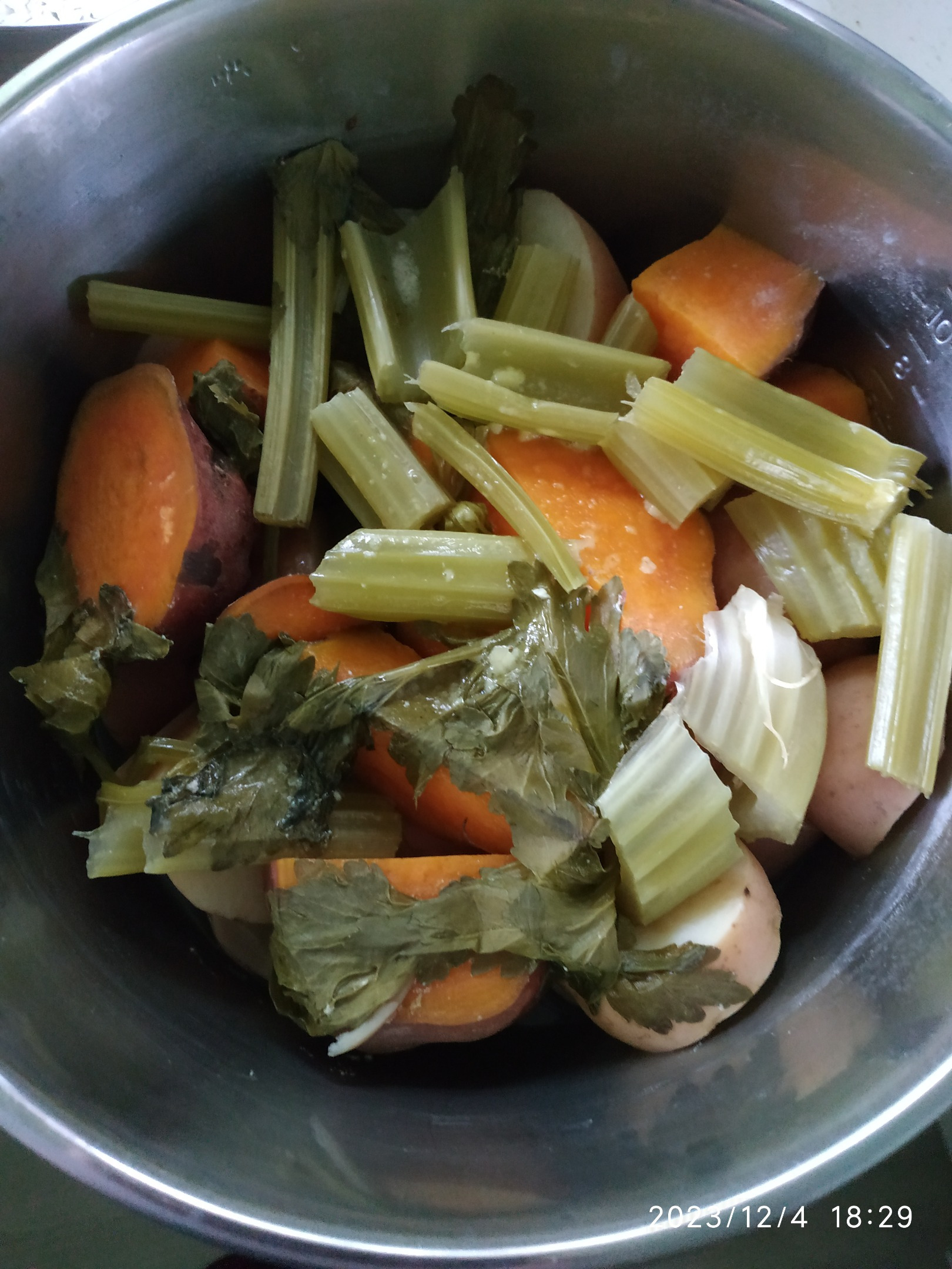 Sometimes I just can not be bothered with coming up with anything in particular.  So I put everything in and mash it up!  Put some haloumi in the shallow dish and it made a yummy mash potato, kumera, celery dish!  I used the water from the haloumi and put into the mash for a lovely creamy and salty flavour.