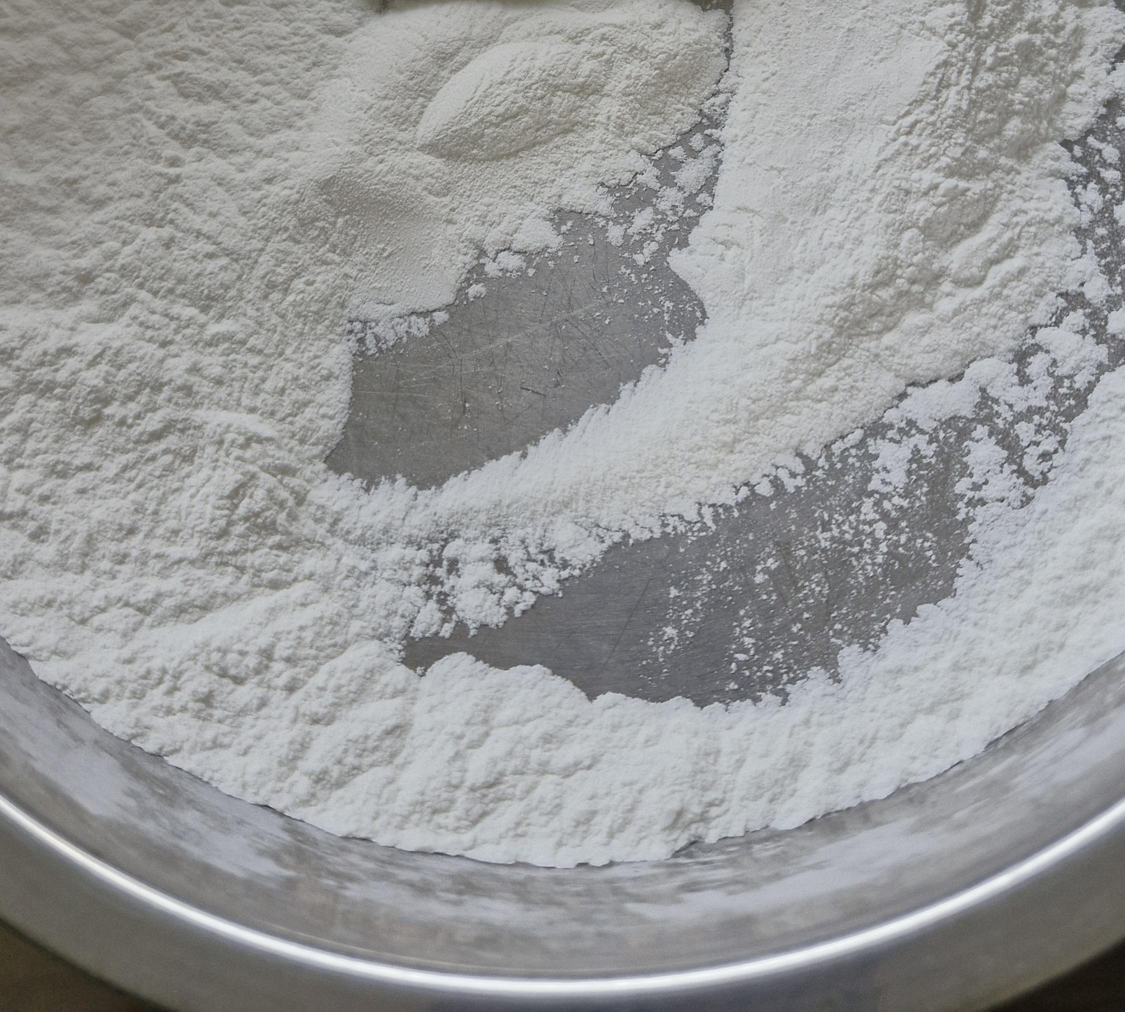 100 g glutinous rice flour, some sugar (35 g), 170 ml of water or milk. Mix well. Steam for about 5-10 mins and then put on a plate some powder with some sugar and roll the mix to make moochi.