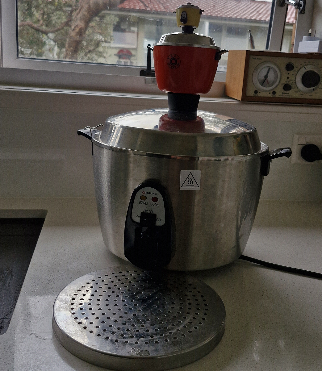 This is the Stainless Steel model and the 2 toys are really cute - the Red 1 cup Toy and then stacked on that is the mini Tatung yellow toys. These don't come with any of the Tatungs, they are just really cute.