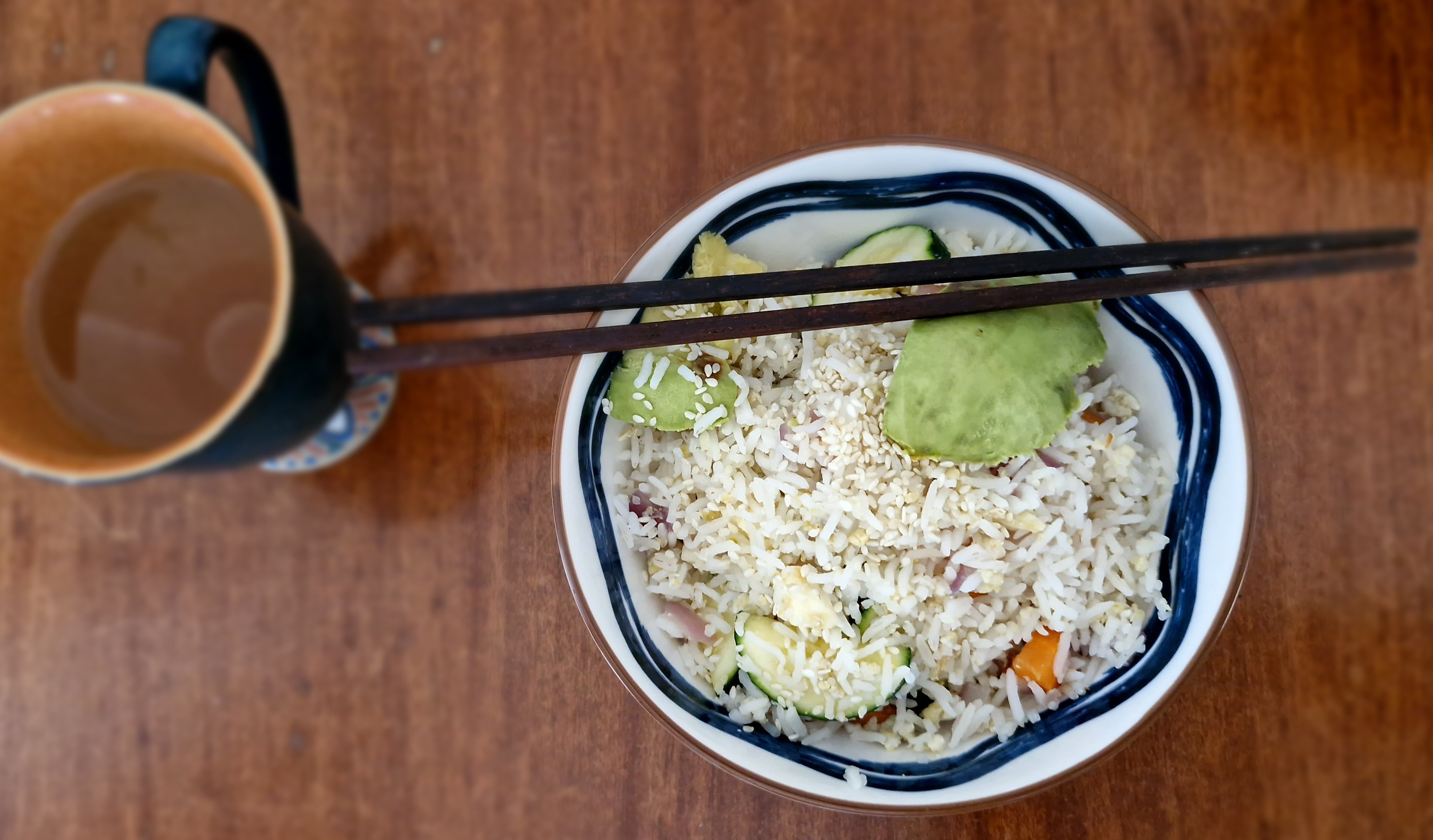 Left over rice - easy! Fry up some eggs and onions and other veggies and you've got a yummy easy fried rice! I find if you have halloumi cheese you don't need to add soya sauce as it's got enough salt in the cheese to give a wonderful flavour.